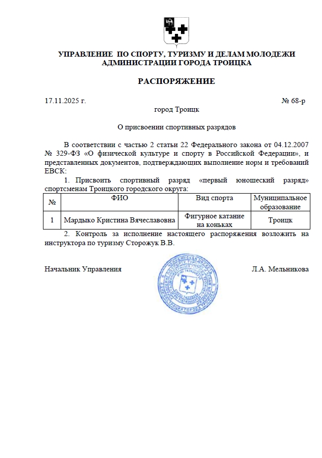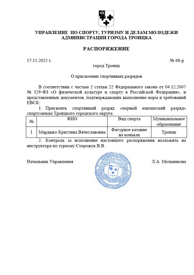 11.12.2025. Поздравляем нашу спортсменку Кристину Мардыко с присвоением первого юношеского разряда!