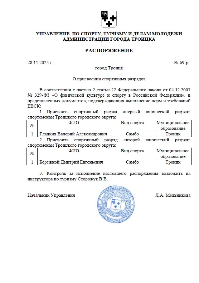 Это важное достижение — присвоение первого юношеского разряда Валерию Гладких и второго юношеского разряда Дмитрию Бережному!