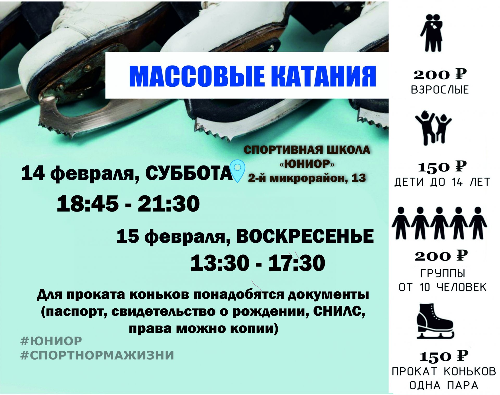 Массовые катания Даты: 14, 15 февраля